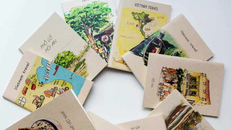 - Sổ tay: Chọn sổ da thủ công, bìa có thể in chìm (emboss) hoặc vẽ tay (miniature painting) phong cảnh đẹp nổi tiếng của Việt Nam. Sổ tay với giấy dó truyền thống cũng là một lựa chọn tinh tế.